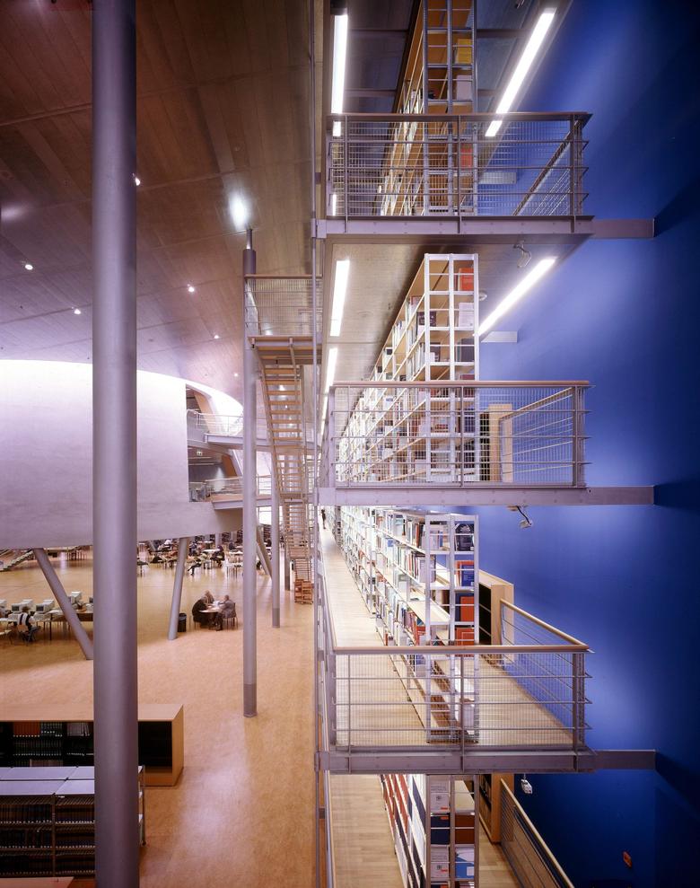Daylight enters the building through the climate-controlled glass facades, as well as through the cone whose base forms the focal point of the central space. Moreover, the cone shapes different reading rooms on the upper floors. Mecanoo continues to work with the library, designing incremental upgrades of the learning environments (2008-2011) and offices spaces (2015-2016).