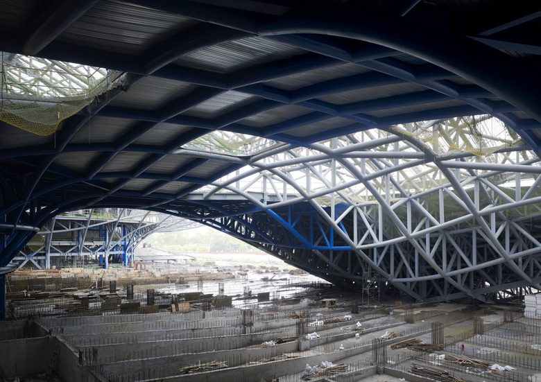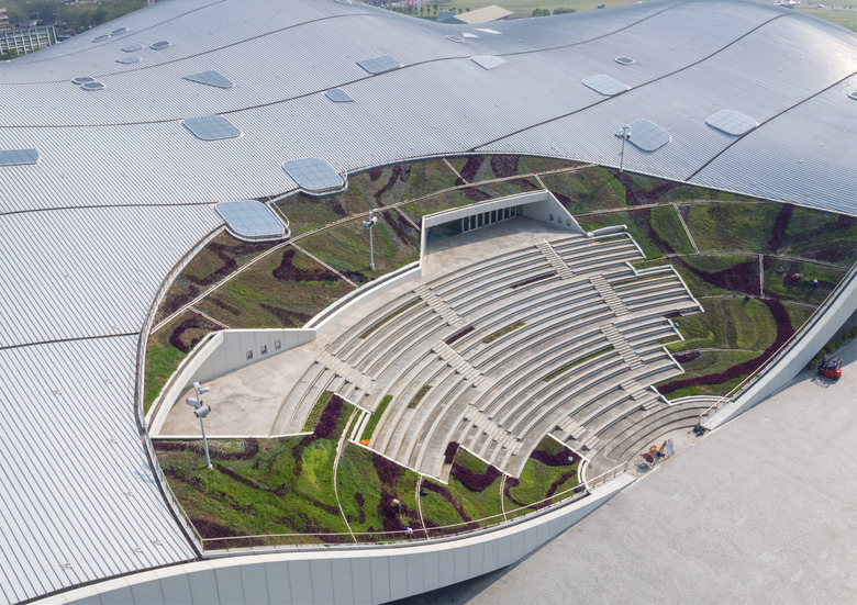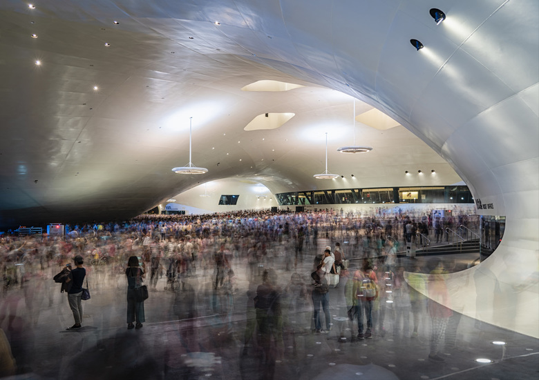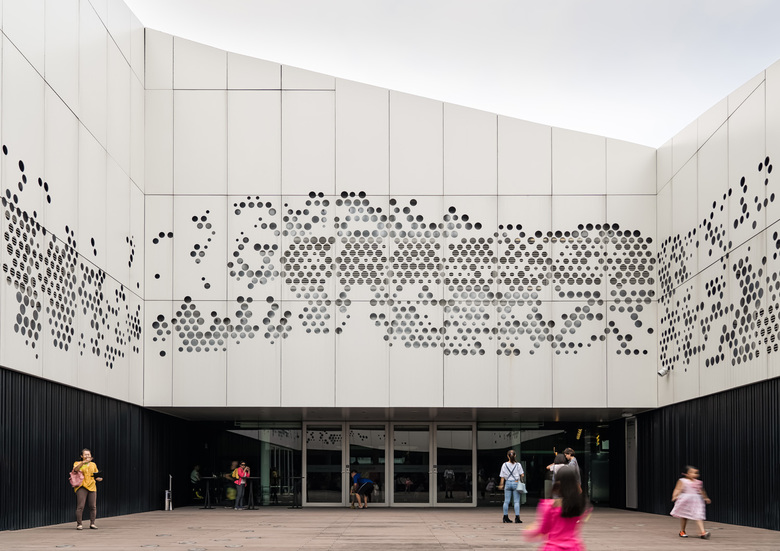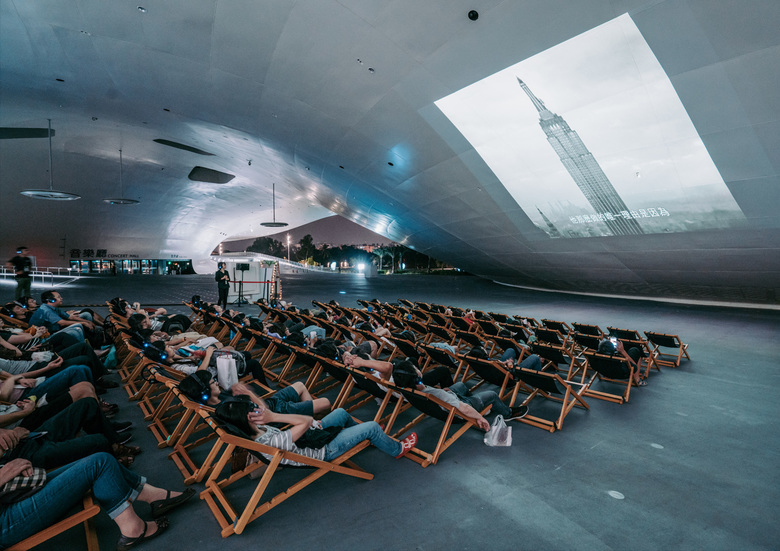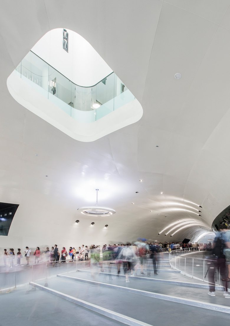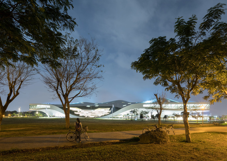 Inspired by the local Banyan trees with their iconic crowns, the vast, undulating structure is composed of a skin and roof, and connects an extensive range of functions. The curved steel structure was built in cooperation between a local and a Dutch shipbuilder. Underneath this roof is Banyan Plaza, a generous, sheltered public space. Residents can wander through here day and night, practice Tai Chi or stage street performances along walkways and in informal spaces.An open-air theatre nestles on the roof where the structure curves to the ground, with the surrounding park forming the stage. Designed with the subtropical climate in mind, the open structure allows the wind to blow freely through Banyan Plaza. The seamless flow between interior and exterior creates opportunities for crossovers between formal and informal performances.
