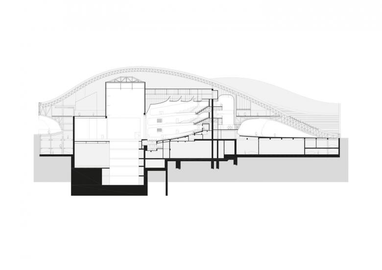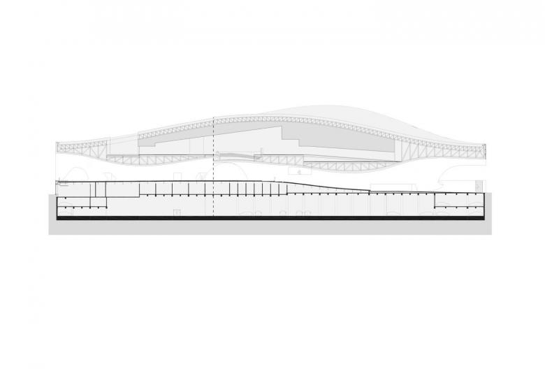 The open, protective shape of the banyan tree becomes a springboard for the design. Its expansive sheltered crown becomes the Banyan Plaza, a partially enclosed public space where the cooling wind can freely flow. Between the four formal performance halls, which form the ‘trunks’ that support the undulating roof, a topography rising from ground level to plus five metres becomes part of the park’s landscape. Where the roof touches the earth the building becomes an amphitheatre, open towards the surrounding parkland which, in turn, becomes both its stage and its set.