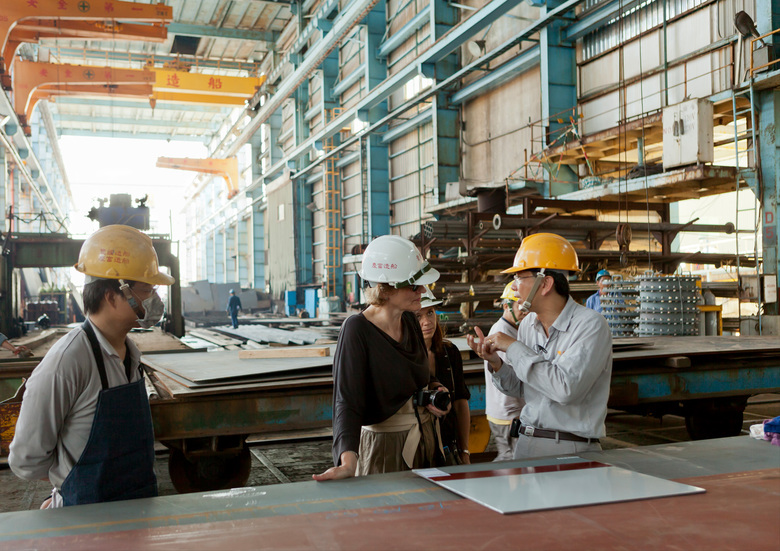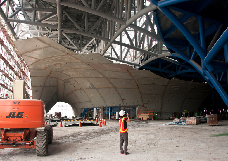We continue our search for the building’s skin and the idea arises to use the finely tuned, locally accessible techniques of Kaohsiung’s ship building industry. We convince everyone that the Banyan Plaza should have the detailing of a cargo ship, and not of a luxury yacht. There should be hoist points, for example, so that lights, banners and fabric can be hung. We don’t want to aim for a perfectly smooth façade – we want to employ the ship builders to do what they do best: create a durable, long-lasting skin on a scale that some contractors would be intimidated by. We ultimately want the building to look like a ship on the land.