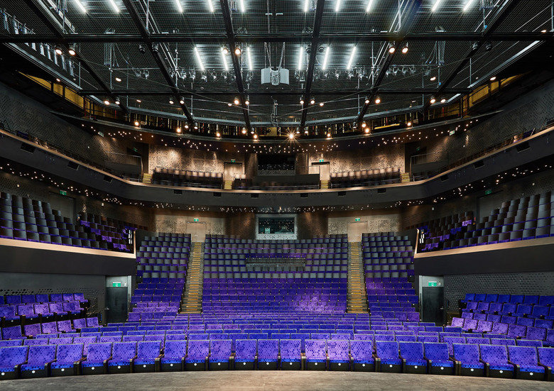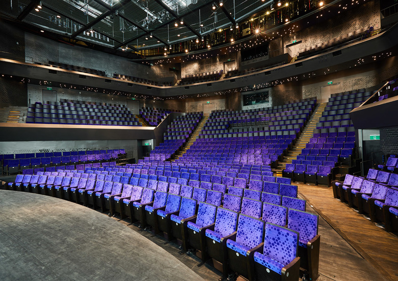 The Playhouse, with its 1,243 seats in Mecanoo Blue, is designed to host a variety of drama and dance performances. Flexibility is the core element in the design of this multifunctional space. The layout is adaptable and can be changed from a typical proscenium stage with the audience in front, to a thrust stage with the audience on three sides.