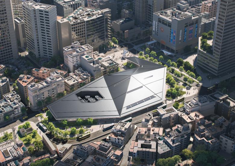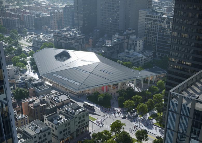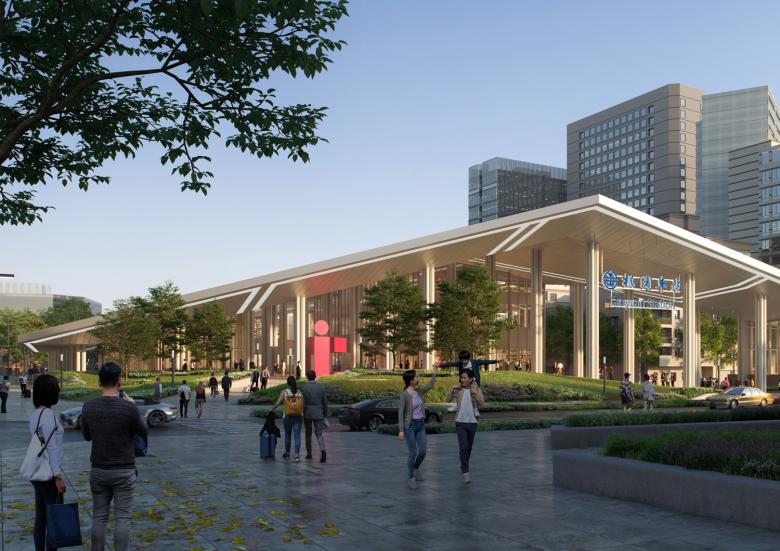 As a pivotal initiative within the two-phase masterplan, Taoyuan Station is set to emerge as the city's central axis. Located in the old city center, the new Taoyuan Station is a large, covered plaza encompassing commercial spaces, a metro, a bus station, and underground railways. The roof canopy spans three volumes and two voids, which are well-connected to the underground levels. The heavy structural columns are divided into slimmer ones, creating a sense of lightness that supports the large canopy, making it appear as if it is floating above the site.Taoyuan, known as the Airport City, embodies this spirit with the station's canopy resembling an origami aeroplane. The soffit pattern, combined with linear lights, creates a dynamic ceiling that captures the attention of the station's users. Recognizing the subtropical climate of Taoyuan, and as part of Mecanoo's sustainable and holistic design approach, the canopy provides shade and shelter for the public space. This design seamlessly merges the city and the station, enhancing the public character of the transportation hub.