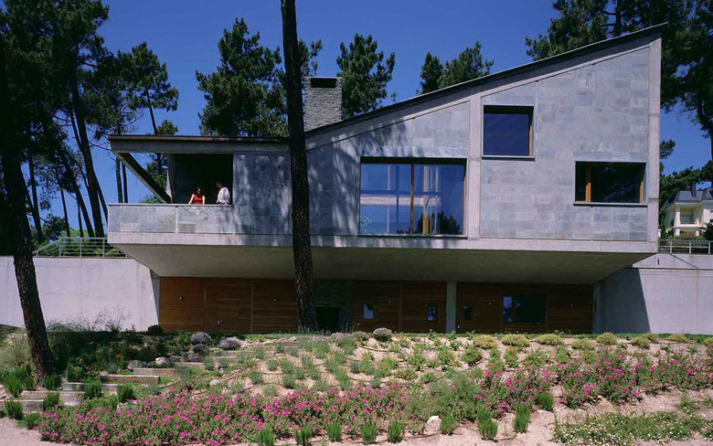 For this site facing the monastery of El Escorial we designed a compact family country house, respectful of its wooded surroundings. The steep slope of the terrain conditioned the architecture and design of our project.