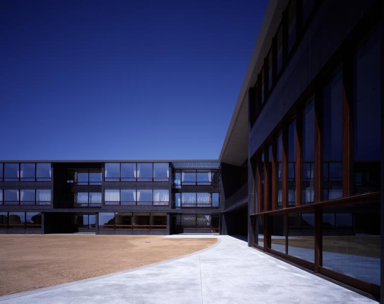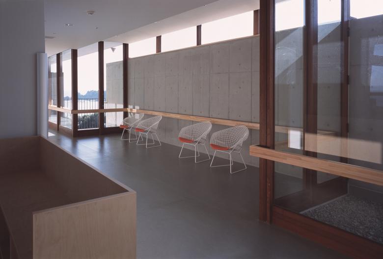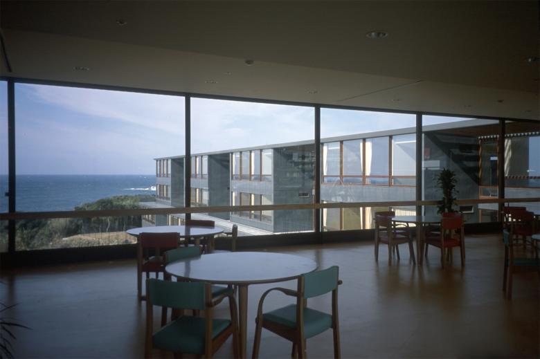 With the placement along the axis of this site extending north and south in length but is narrow east and west, the building was adopted the type of side corridor access. The corridor extending north and south is more than a mere passage in functional meaning, takes on variety planer shape and size, becomes unified with smallish day rooms or galleries in each space, and has continuity with dining halls, large day rooms and exercising room. Furthermore through windows of varied shape and size, the corridor forms bond between inner space of life with scenery of natural environment and of children’s lives in junior high school and elementally school next to this site. At the southernmost of the corridor of building, there was to be the spaces where aged peoples might have easygoing flow of time enjoying the magnificent view of the Pacific Ocean. Every individual bed-sitting room is oriented so that aged people can wake up in morning sunlight. And were aged people is able to go off by oneself, and abele to be sunk in thought peacefully viewing the scenery of the sea by day, enjoying the starry sky at night.