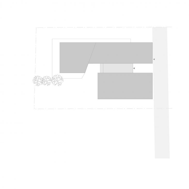 The building site is considered to sit on a potential archeological spot with remainigs from a roman settlement. In order to avoid exessive expenses for an archeological excavation process we kept the footprint as small as possible. Respecting the local limitation in hight development and wanting to realize the possible allowed size we ended up to propose a cantiliver of the separted volumes.