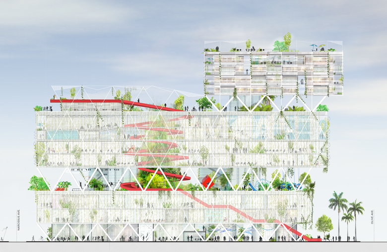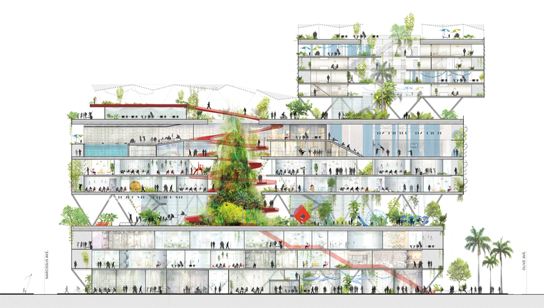 After winning the international competition Shore to Core, commissioned by the West Palm Beach Community Redevelopment Agency (CRA) and organized by the Van Alen Institute in 2017, Ecosistema Urbano is developing several parts of the proposal, among them the visionary Banyan Hub building.
