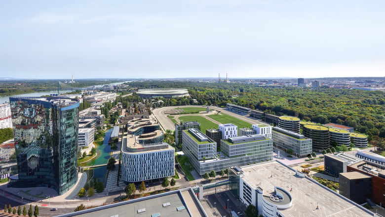 Nun erweitert das grüne Viertel seine Flächen mit zwei weiteren Planungsgebieten rund um die Wiener Trabrennbahn um 80.000 m², dem VIERTEL ZWEI Plus. In direkter Nähe zum Grünen Prater entstehen neue Büroflächen, vor allem aber innovative Wohnprojekte.