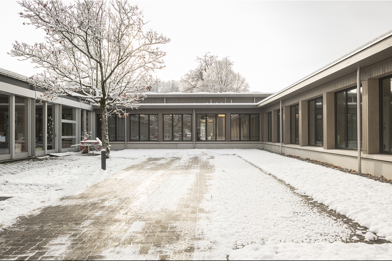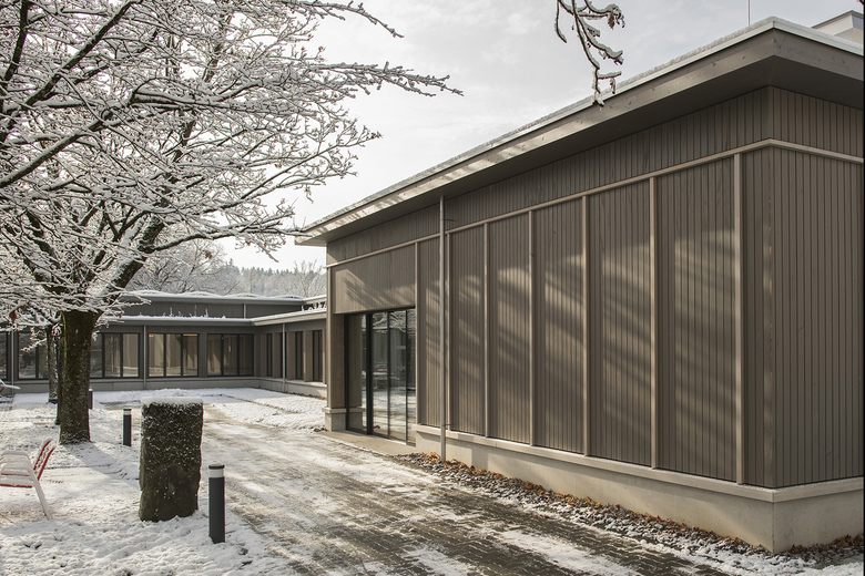 Ein Eingeschossiger Holzbau erweitert das Mitte der 1970er-Jahre erstellte Schul- und Therapiezentrum beim Bürgerspital Solothurn um rund 1‘400m² und verbindet sich mit dem Bestandesbau über einen Hof. W2H Architekten AG erhielt den Auftrag als Generalplaner durch ein selektives Auswahlverfahren auf Einladung. Nach Abschluss des Neubaus und einer einjährigen Baupause, welche für die Planung der Sanierung genutzt wird, werden die Bestandesbauten mit einer umfassenden Sanierung in die gegenwärtige Zeit überführt.