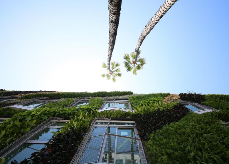 Upon completion, the scheme will host one of the largest living green walls in the USA. This defining envelope is covered in lush plantings of native, drought-tolerant succulents and vines, whose familiarity to the local climate negates the need for extra irrigation and maintenance. The result is a unique texture forming an organic, natural, seasonal addition to the neighborhood streetscape.