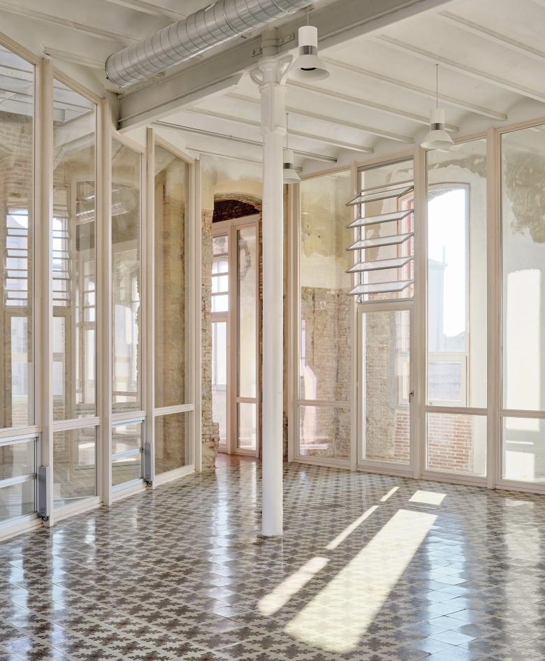 The renovation reinforces the building’s integrative vocation through an urban inclusion strategy that improves access to public services, strengthens its relationship with citizens, and transforms La Anònima into an open civic hub capable of reactivating the surrounding urban fabric. Originally embedded within a dense grid of adjoining constructions, the complex is liberated through selective demolition, enabling the creation of new public open spaces and improving its relationship with the immediate environment.
