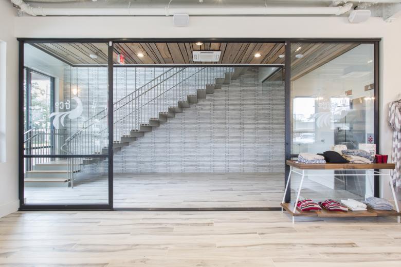 Interior spaces are amply lit by natural light, but consideration of the south facing store front passive solar gain was mitigated by the porch and overhang.