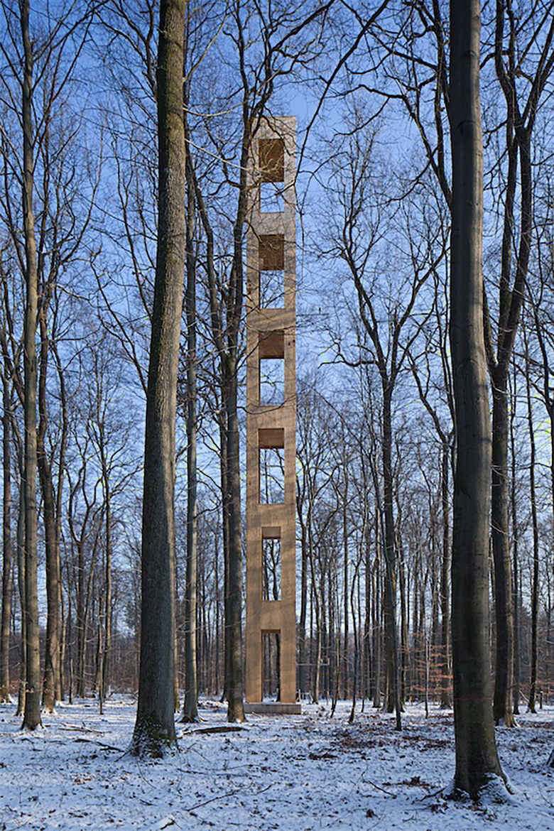 Die grundlegende Gestaltung basiert dabei auf einer rationalen Haltung. Der Turm verdichtet die Vorgaben aus Funktion und Tragwerk zur einer archetypischen Erscheinung, die dem Formenreichtum der Natur eine eigene Gestalt hinzufügt. Sie wird somit Teil des Ganzen und behauptet sich erst bei der näheren Betrachtung. Nicht ohne Grund finden Besucher den Forschungsturm erst nach intensiver Suche.