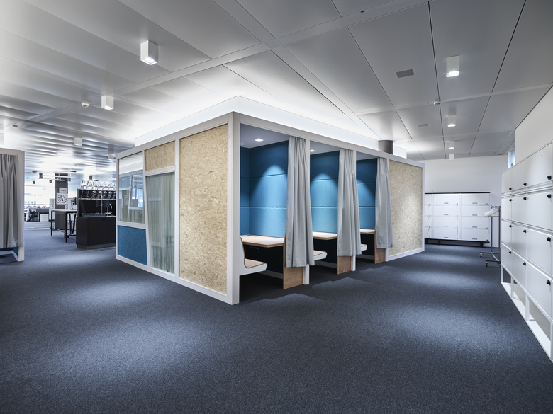 Der Trend hin zur individuellen Office-Landschaft ist schon länger bestehend. Arbeitswelten werden nicht mehr starr und mit Fokus auf einen Arbeitsplatz pro Mitarbeiter definiert, sondern bieten neuen Formen von Arbeitstechniken das entsprechende Setting. Raum für Workshops, Gruppenarbeiten finden Einzug, wie auch Räume für konzentriertes Arbeiten, auch in Grossraumoffices. Zudem soll der individuelle Spirit des Unternehmens durch Formensprache, Farbanwendungen und diverse räumliche Inszenierungen spür- und erlebbar sein.