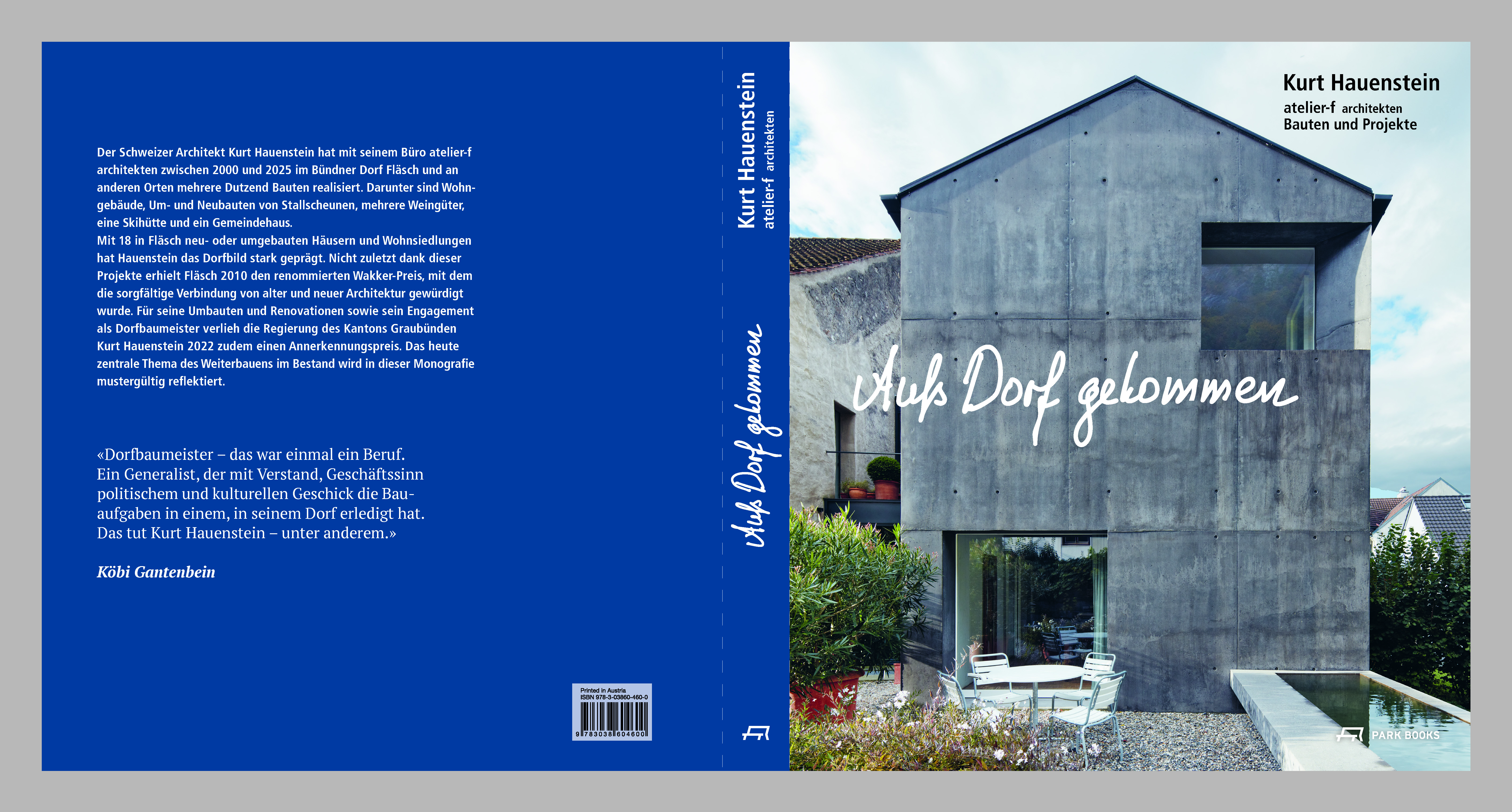 Köbi GantenbeinDieses Buch zeigt detailliert rund 20 Bauten, die der Schweizer Architekt Kurt Hauenstein mit seinem Büro atelier-f architekten in einem Vierteljahrhundert im Bündner Dorf Fläsch und an anderen Orten zwischen 2000 und 2025 geplant und realisiert hat. Darunter sind Wohngebäude, Um- und Neubauten von Stallscheunen, mehrere Weingüter in der Bündner Herrschaft, eine Skihütte in Flumserberg und das Gemeindehaus von Nesslau im Toggenburg.
