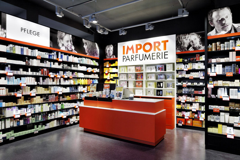Seit April 2012 werden nach und nach alle 120 Filialen der Import Parfumerie im Design von Bureau Hindermann umgebaut und neu eingerichtet. Das Konzept funktioniert für jeden Grundriss, jede Ladengrösse und zieht sich sogar bis ins Schaufenster: schlicht, elegant und äusserst flexibel.