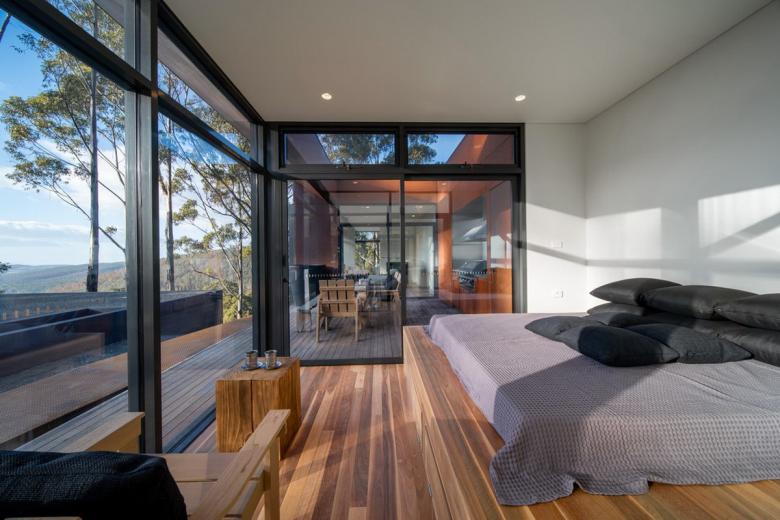 MountainTop Snug Resort House is nestled in a lush forest on the hillside of Snug, just over 20-minutes drive from the center of Hobart, Tasmania’s capital city. The site area is 2.3 hectares, and from the resort house, guests can enjoy panoramic views of Snug Beach, as well as Bruny Island North and Tinderbox Peninsula.