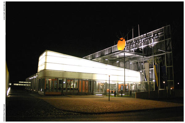 Ein eingeschossiger Gebäudeteil mit vorgelagerter Terrasse und direktem Gartenzugang, welcher die Seminarräume beherbergt, wird mit dem dreigeschossigen Zimmerblock durch die verglaste Eingangshalle, einschließlich Cafeteria, verbunden. Die 50 Doppelzimmer werden über einen außen liegenden Laubengang erschlossen. Die Zimmer, zweckmäßig ausgestattet, halten für deren Bewohner eine Kleiderablage, anstatt Schrank, und einen Arbeitsplatz mit Internetzugang bereit. Auf den 16 Quadratmetern findet der Gast ein optimal ausgenutztes Vollwertzimmer mit Doppelbett und getrenntem Bad und WC. Belichtung als auch Belüftung werden durch die Eingangstür übernommen, die somit gleichzeitig als Zugang und Fenster fungiert.