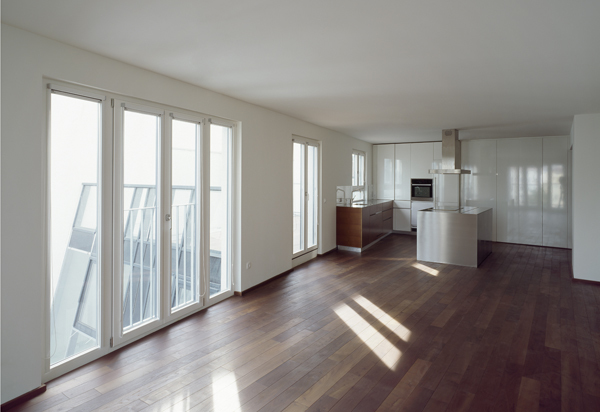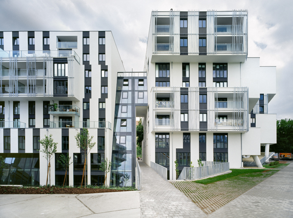 Dabei wird einerseits auf eine gezielte Durchlässigkeit mit Wege- und Blickbeziehungen Richtung Park geachtet, andererseits wird die Erdgeschosszone – zum Teil zweigeschossig - der stadträumlichen Freifläche zugeordnet.