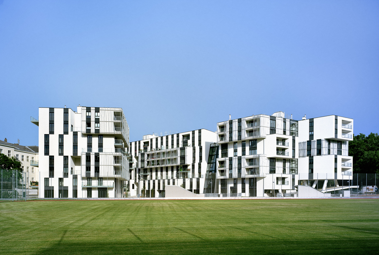 Diese Zwischenräume mit Ausblick in den umgebenden Grünraum bilden als “grüner Riss“ in Verbindung mit der unberührten und komplett erhaltenen Baumallee in der Sensengasse, den der Fassade vorgehängten Gärten und den luftigen Einschnitten jenes vertikale Grün, das die gesamte Bebauung mit dem Park zu einem organischen Ganzen zusammenfügt.