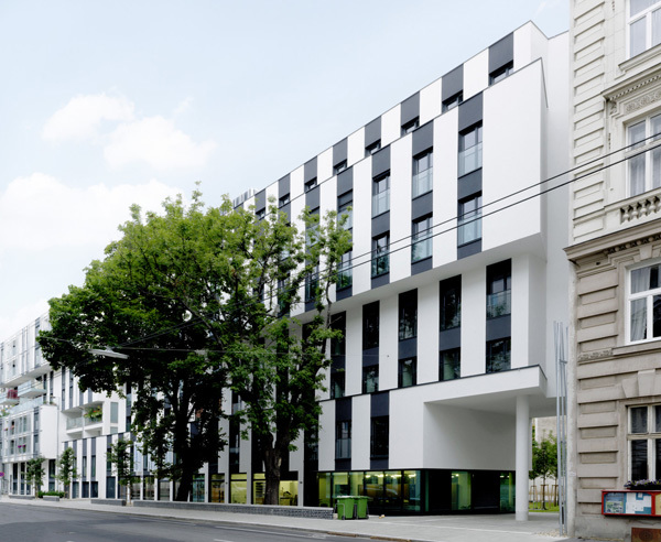 Die Baumreihe entlang der Sensengasse wird darüber hinaus in die Gliederung der Einzelbaukörper aufgenommen, das Projekt reagiert somit sensibel auf den Baumbestand.