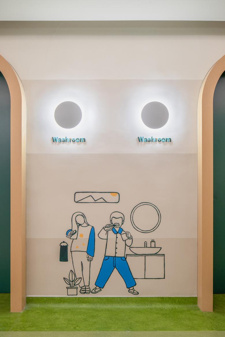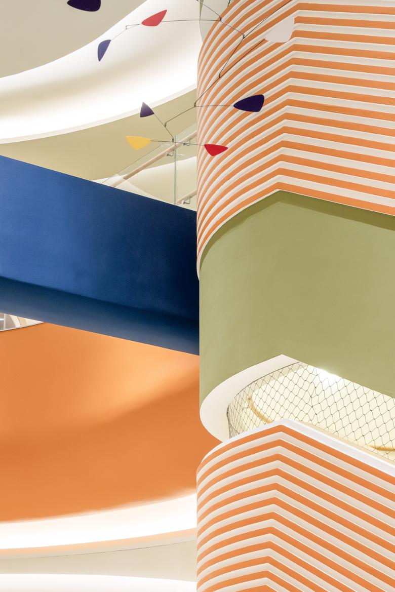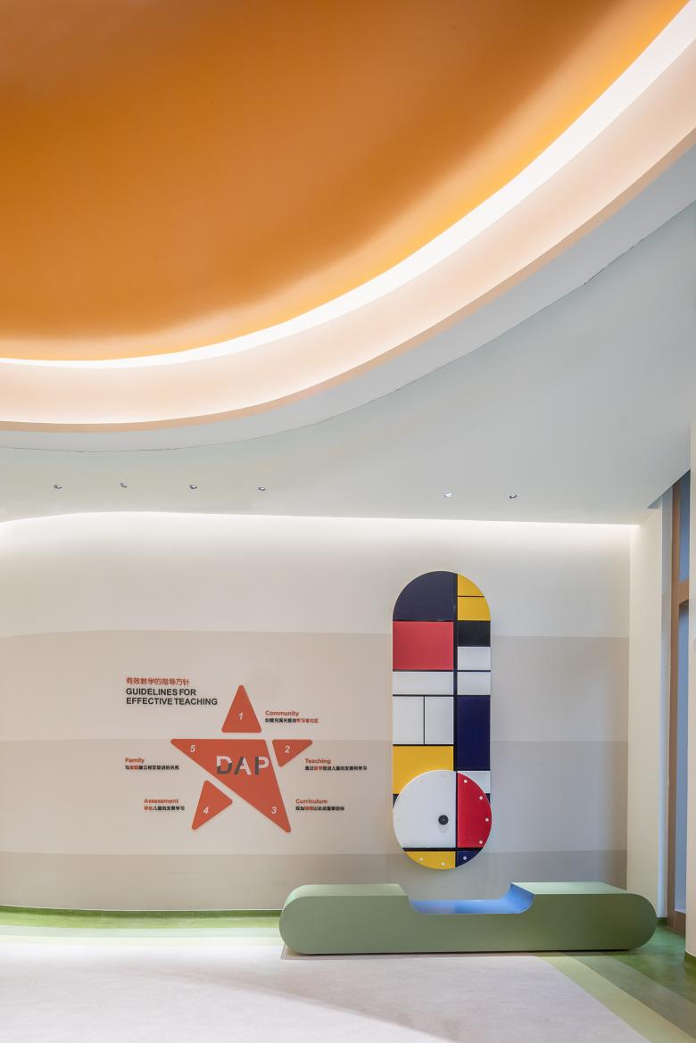 Set within a dense urban plot surrounded by luxury residential towers, initial work involved the optimisation of natural light and a wholesale reconfiguration of the internal structure. The design team reordered the entire interior space to encourage a flow driven by the natural curiosity of children. The result is a completely fluid system of movement, one that is equally interesting to the kids and adults; using these seven principles of arts as a guide, the design team wanted to showcase how these notions can be applied within the space itself.