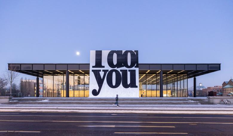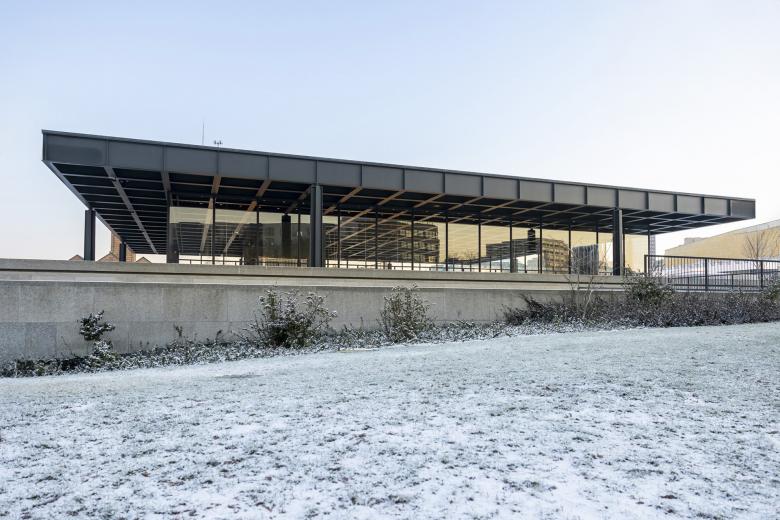 Winter pictures of Neue Nationalgalerie, Mies van der Rohe, Art work by Monica Bonvicini