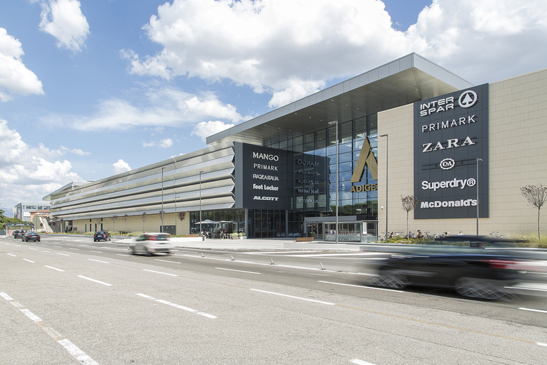 Profiting from a strong urban environment, this building is located just 500 meters from the highway and on a main access road to the city centre. The centre includes over 130 shops in two floors, organized around a triangular mall. Service areas, delivery yards and two underground parking levels complete the program.
