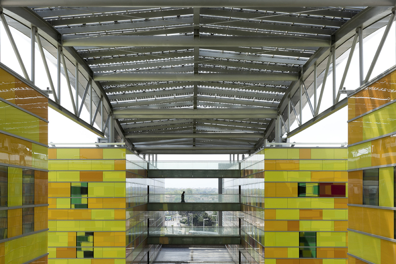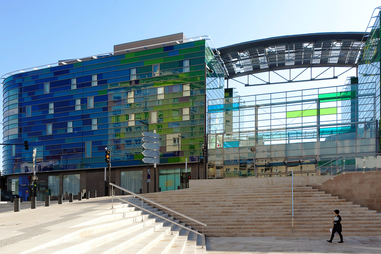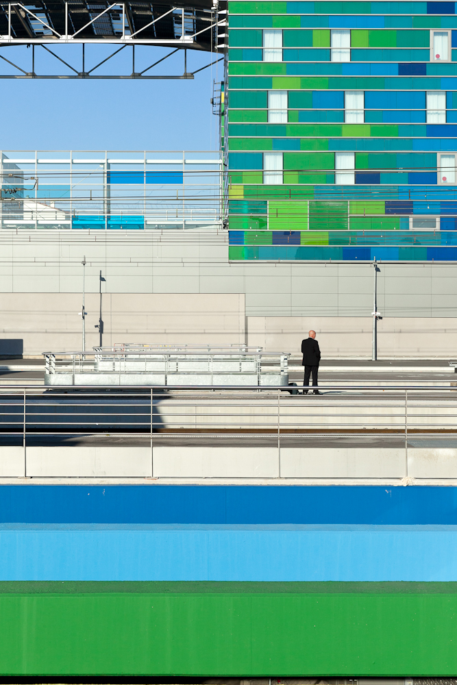The project is structured on a linear axis from the outline of the rail tracks that at ground level becomes a public space connecting with the city centre via a boulevard. The different buildings are on both sides of the axis and a large pergola joins them together in a complex headed by the sports facilities, the only isolated specific volume that acts as a new urban symbol.