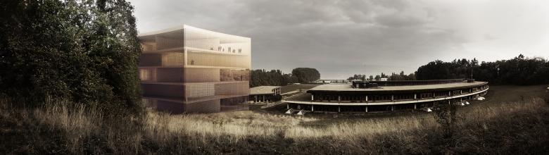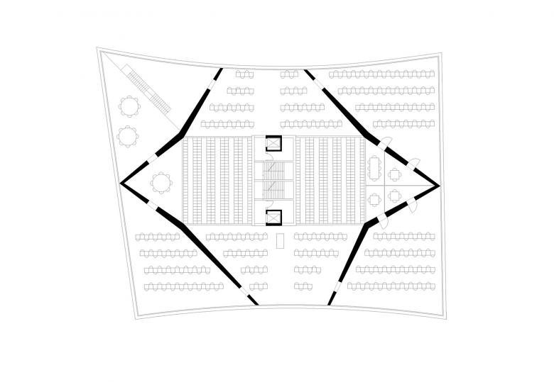Nous proposons donc de faire une bibliothèque d'archive automatisé (Speicherbibliothek mit Hochregallager) qui peut être vue et qui en même temps cependant n’est pas prodigue avec le terrain ou totalement sous le sol. Au contraire, elle doit montrer la quantité de la connaissance et enrichir l'atmosphère principale dans la maison. Autour de cela on peut étudier. Un paysage éducatif, sur différents étages, dans une structure semblablement à des livres empilés.