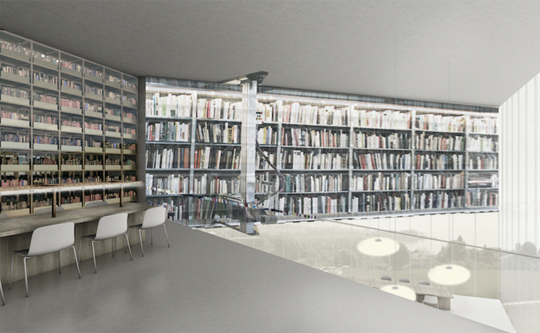 L’extension du bâtiment l’Unithèque à Dorigny prévoit des espaces de 4570 mètres carrés pour l’archivage et stockage. Ceci peut être réduit selon Kardex Remstar à 220 mètre carré de surface habitable. Cette bibliothèque va être servi par huit robots en rail avec un mouvement vertical et horizontal, dévoilent une dynamique silencieuse.
