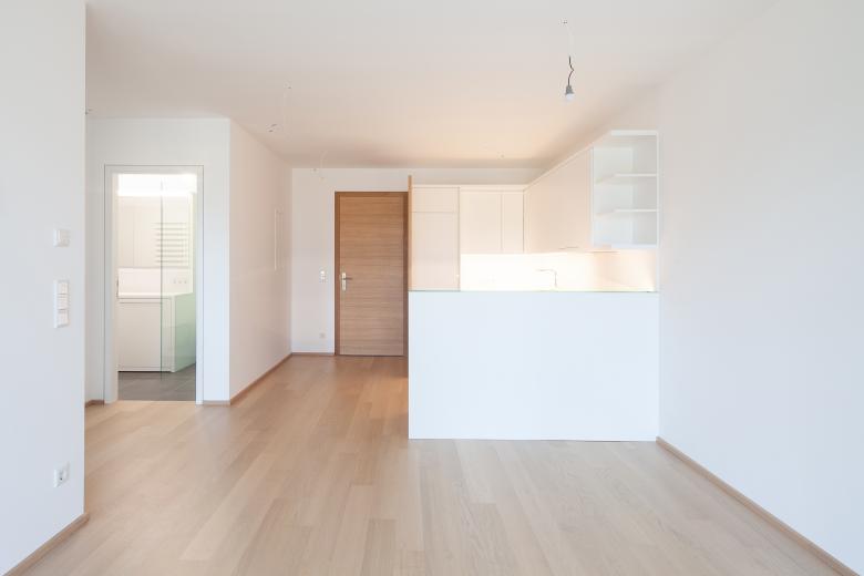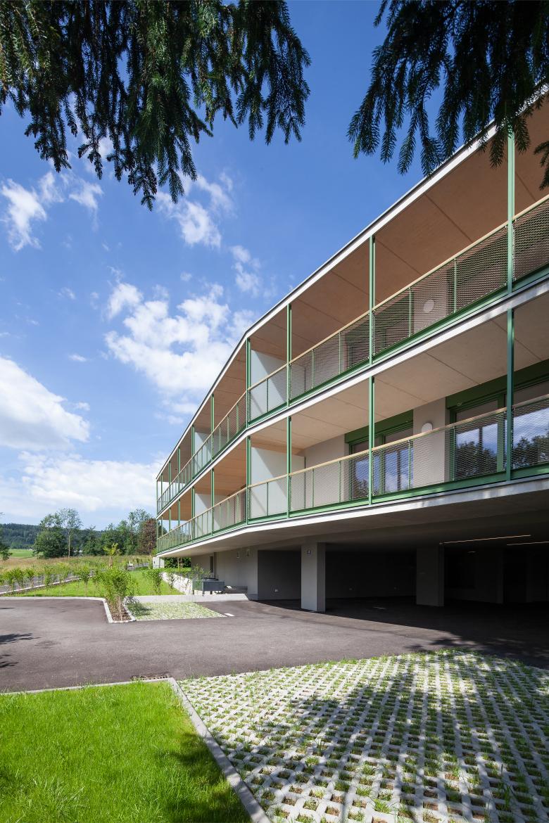 Ein Hauptaugenmerk des neuen Wohnhauses bildet die großzügige, umlaufende und überdachte Balkonzone - dieser vorgehängte, private Freibereich bietet ausreichend Platz, der ganztags zum verweilen einlädt, erweitert den Wohnraum