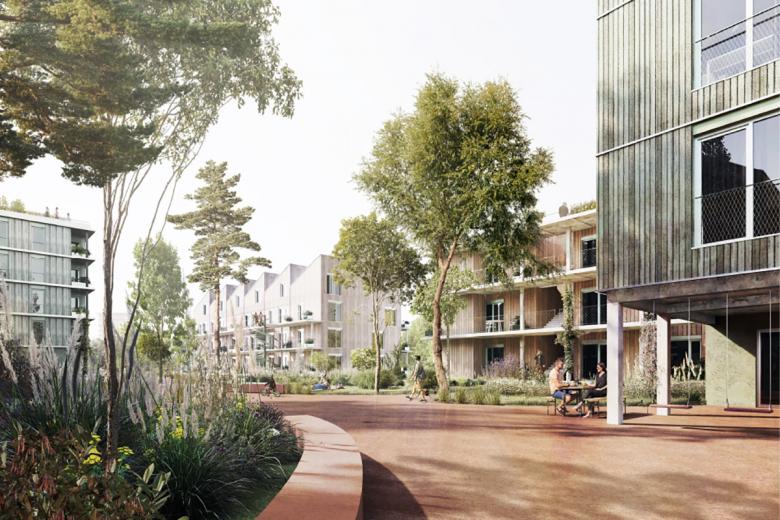 Der Lösungsvorschlag besticht durch seinen überzeugend gestalteten und gut strukturierten Freiraum, in dem die Wohnbauten eingestreut sind und die Intention städtisches Zusammenleben mit den Vorzügen des Wohnens im Grünen miteinander zu verbinden, welche glaubhaft dargestellt ist. [...] Vier sich wiederholende Gebäudetypen werden so ins Areal gesetzt, dass hohe Wohnqualität erwartet werden kann. Durch das aufeinander abgestimmte Gestaltungskonzept von Stadtvilla, Eckhaus, Hofhaus und Gartenvilla wird Zusammengehörigkeit und somit Adressbildung geschaffen, ohne dabei Monotonie zu erzeugen.