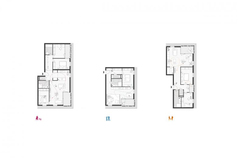 Die Mehrzahl der angebotenen Wohnungstypen ist entweder durchgesteckt oder nach zwei Himmelsrichtungen orientiert und auch in ihrer inneren Aufteilung wohldurchdacht, sodass wenig Gangflächen entstehen und für den eigentlichen Wohnbereich mehr Raum geschaffen wird. Dies stellt aus Sicht der Jury einen innovativen Ansatz dar, auch in kleine Wohnungen hohe Wohnqualität zu bringen. [...].