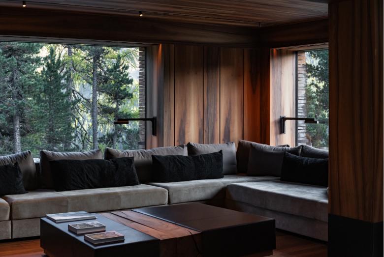 Chalet B is set in the Suvretta mountains of the Swiss Alps. Strict regulations meant that the architects had to work solely within the footprint of the existing ski chalet and could not extend the building. While all the new spaces had to be dug out from underneath the old walls, above ground the existing volumes were given a fresh identity by moving and enlarging some of the windows, maximizing the spectacular mountain views, and by adding a new wood façade to replace the original plaster.