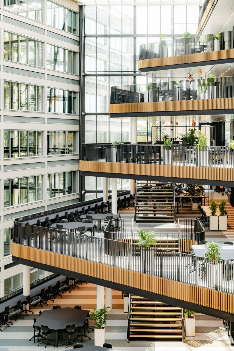Forming a welcoming gateway to the Amsterdam University of Applied Sciences campus, our new Conradhuis building bridges the academic world and the city. It gracefully embraces the past through a dynamic relationship with its surroundings, while its flexible interior leaves space to accommodate future educational requirements. Advancing the notion of furthering knowledge through personal exchanges, a high degree of transparency and fluidity places meetings and accidental encounters at the heart of the building, in our soaring, light-filled atrium.