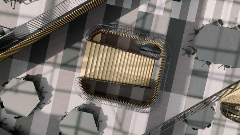 All storeys lead into the atrium and have open terraces where students can work on their projects. The atrium lends the building an open character with plenty of natural daylight. What we had in mind was a new public sphere serving as a theatrical space for major events and exhibitions on the ground floor and as tiered platforms where students from different disciplines will meet up. A place that fosters creativity and where people enjoy meeting up to show off their work and share their knowledge.