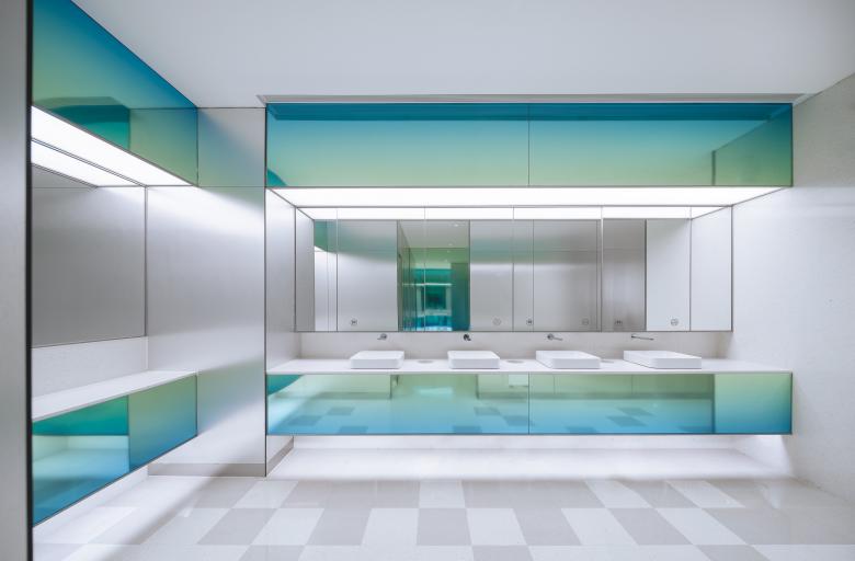 Pixels are central to Kokaistudios’ design approach. Their interpretation is both literal - such as the mall’s transparent grid facade - as well as conceptual: individual units that come together create a cohesive whole. They are most visible on the mall’s Nanjing Road frontage where an outdated glass and stone facade has been replaced by a series of large-sized rectangles and squares of varying dimensions and gradated opacities, each protruding from the building’s core volume to create the impression of floating. Effectively acting as individual shop windows, this ‘pixel’ approach allows tenants to customize their own vitrines. Because each cube juts out from the building, passing street traffic is subject to three-dimensional impressions of the storefronts’ exterior.