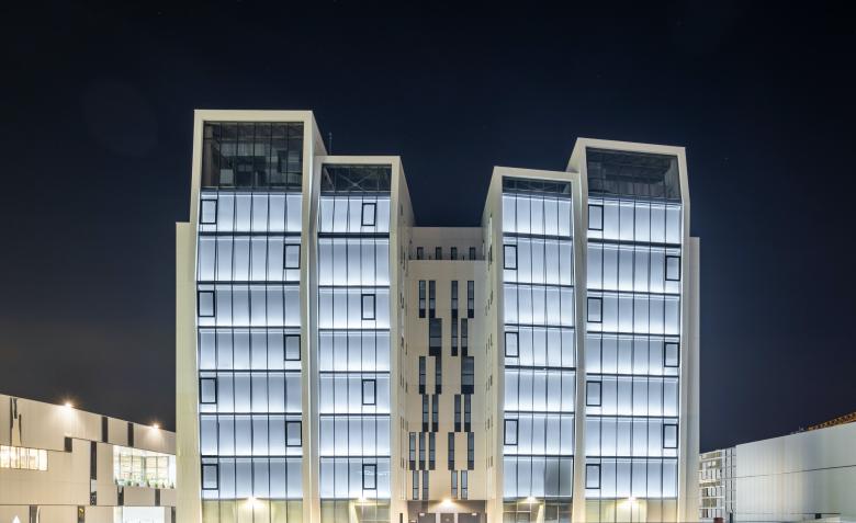 Das neu erbaute Bürogebäude „Initiale“ wird durch seine besondere Lage und eine aufmerksamkeitsstarke Lichtinszenierung zur neuen Landmark des Stadtentwickungsprojekts in Vénissieux bei Lyon. Einen wesentlichen Anteil daran haben die innenliegenden Sonnenschutzanlagen aus Soltis Touch von Serge Ferrari, die in der Nacht für die notwendige Lichtreflektion sorgen und am Tag entscheidend zur Energieeffizienz und zum Klimakomfort des Gebäudes beitragen.