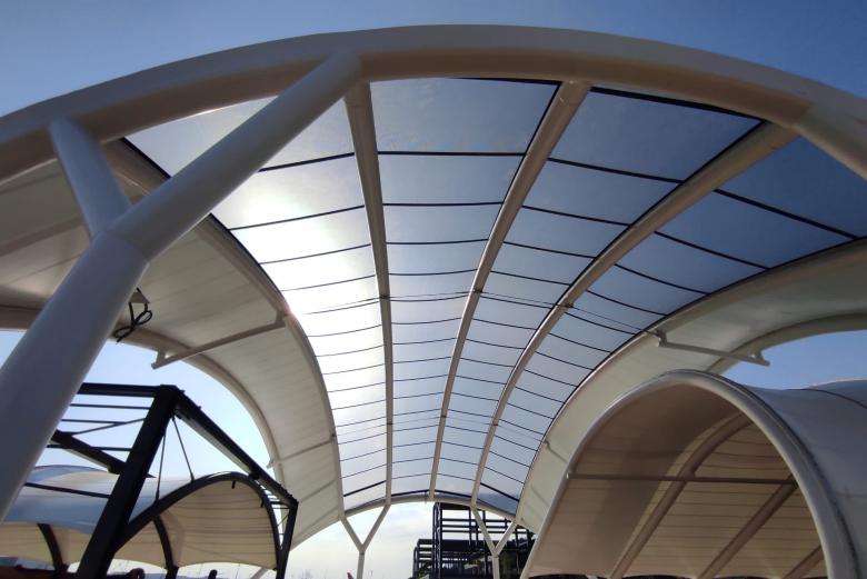 MEMBRANBAUÜBERDACHUNG AUS NEUEM TRANSPARENTEN GEWEBE STFE FÜR OPULENTEN WALKWAY