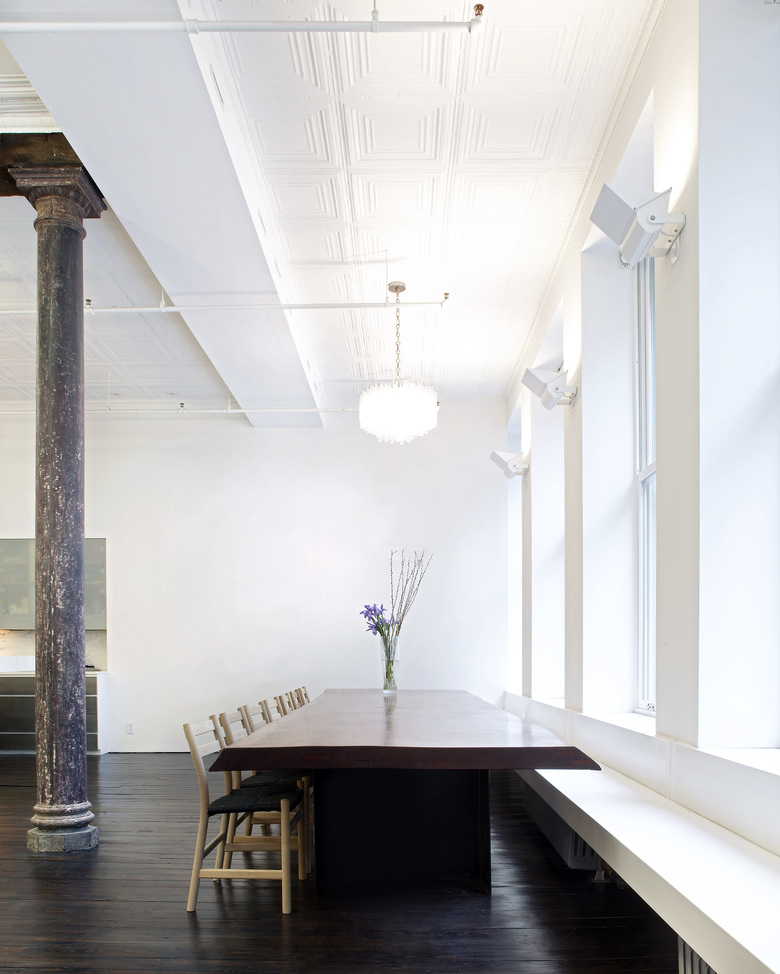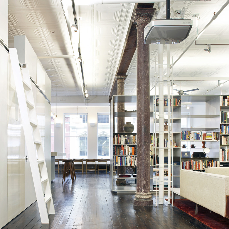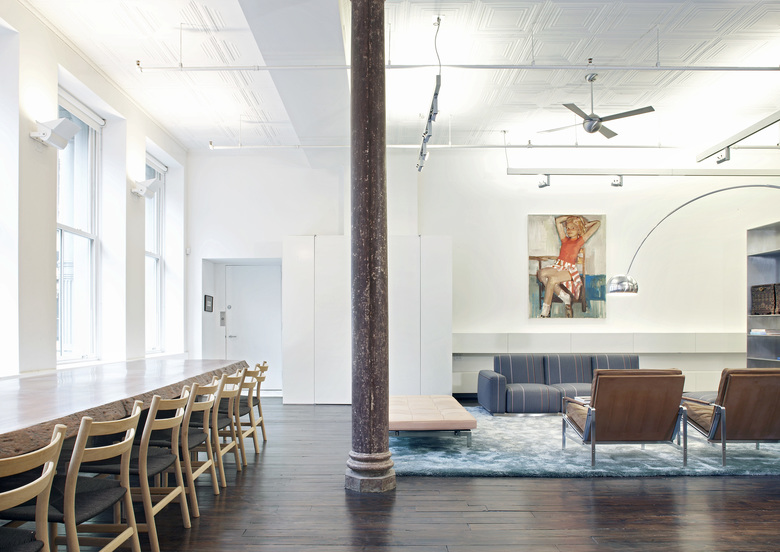 The historic front and back industrial windows define the large loft feel. In order to emphasize these and to allow light and views into the 100’ deep building, we kept the space very open front to back.