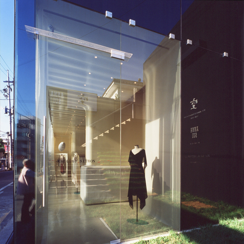 The renovation is for a shop for French fashion designer Martine Sitbon.  The building we renovated was originally a large house.  Located on a sloping hill about 7 meters above the access road, it has changed programs and been redesigned three times in the past five years; an example of the program having nothing to do with a building typology.  Form doesn’t follow function.