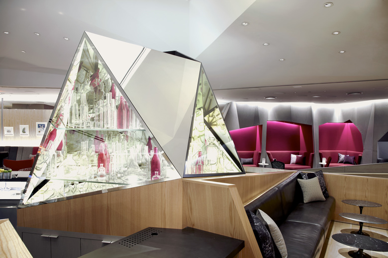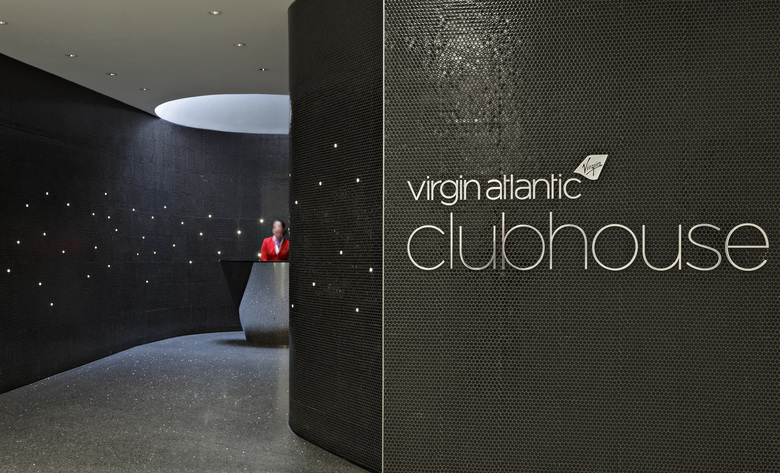 A constellation of sparkling pinpoint lights draws you into the sculpted entry passage. Punctuated by a sky lit receptionist at a specular desk, the entry sequence creates an extended decompression zone between the busy terminal and the relaxed luxury of the clubhouse; a dramatic immersion into the Virgin Atlantic experience.