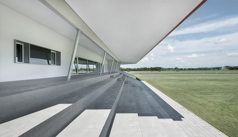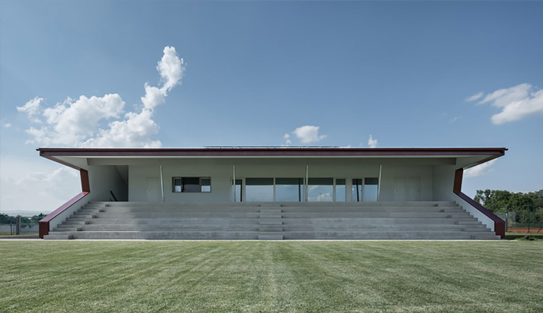 Neubau einer Fußballtribüne mit Vereinsheim und Umkleiden