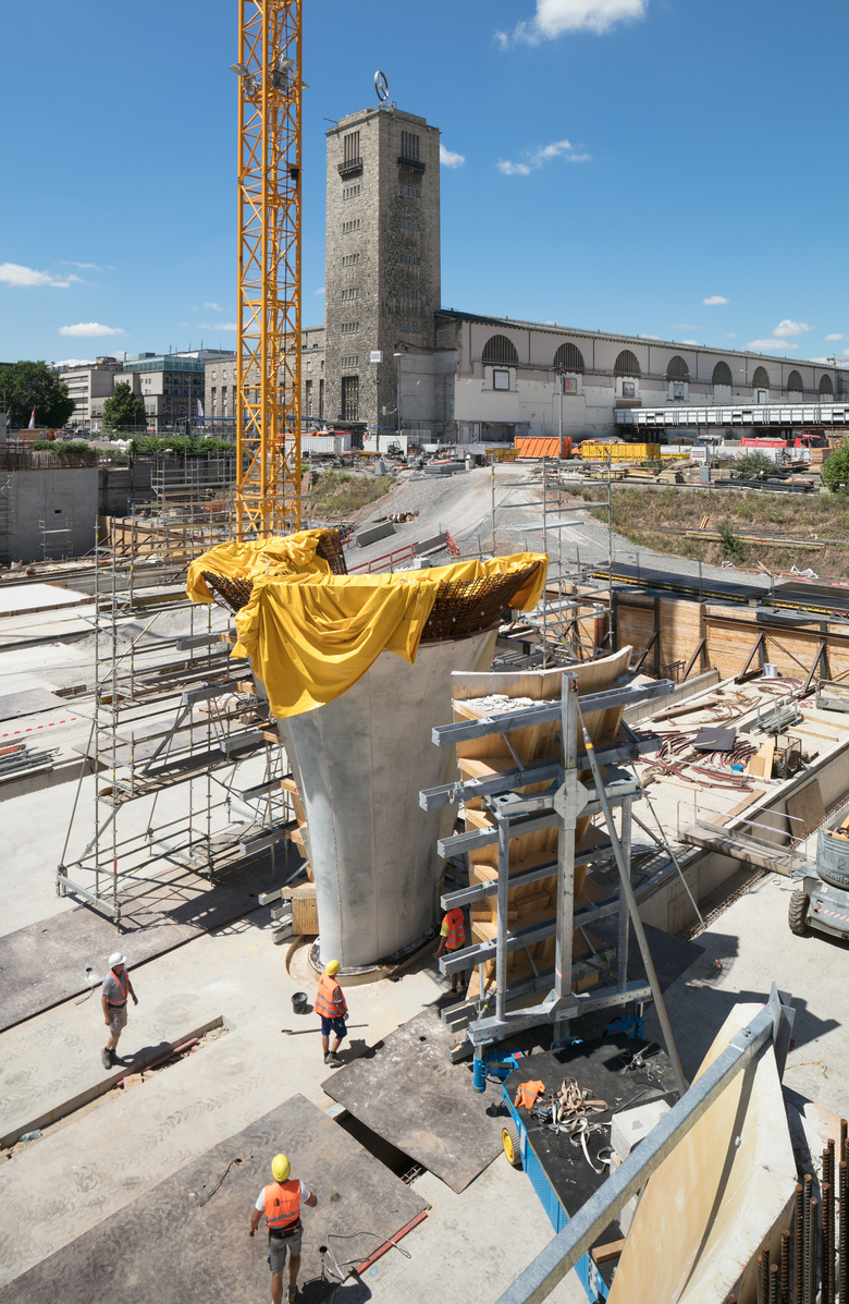Die Blütezeit der Bahnhöfe im 19. Jahrhundert war von wahren Kathedralen der Modernde in den Großstädten Europas geprägt. Bahnhöfe wurden meist am Rande der historischen Stadtkerne errichtet, die um diesen herum wuchsen – wodurch aber die Gleise zu einem Stolperstein der Stadtentwicklung wurden. Dies trifft insbesondere auf Stuttgart zu, denn die südwestdeutsche Metropole liegt in einem engen Talkessel und die Anbindung des vorhandenen Kopfbahnhofs an das wachsende Netz europäischer Hochgeschwindigkeitsstrecken ist schwierig. Im rechten Winkel zu den existierenden Gleisen entsteht in einem unterirdischen Tunnel eine neue Hochgeschwindigkeitsstrecke, die Freiraum für ein neues Stadtviertel schafft. Das Projekt „Stuttgart 21“ sieht die Verlegung der neuen Gleise bis zu 12 m unter dem bisherigen Gleisnetz vor, während das von Paul Bonatz und Friedrich Eugen Scholer 1922 erbaute, denkmalgeschützte Bahnhofsgebäude erhalten bleibt. Der Bahnhof bildet den Kern der weiteren Stadtentwicklung sowie die Schnittstelle zu dem alten und neuen Herzen der Stadt. Er verleiht Stuttgart eine engere Anbindung an Europa und darüber hinaus eine neue Stadtmitte, denn der Schlossgarten – das grüne Herz und die wichtigste öffentliche Grünanlage Stuttgarts – wird über dem neuen Bahnhof erweitert.