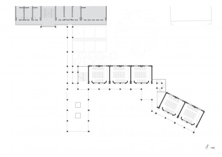 Passive environmental design: North-south classroom arrangements optimise sunlight and cross ventilation. Vault roofs help to divert rainwater to suit the local climate and increase area and volume to cool the upper classrooms in summer.
