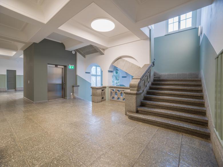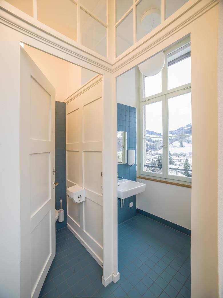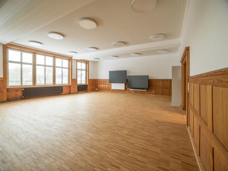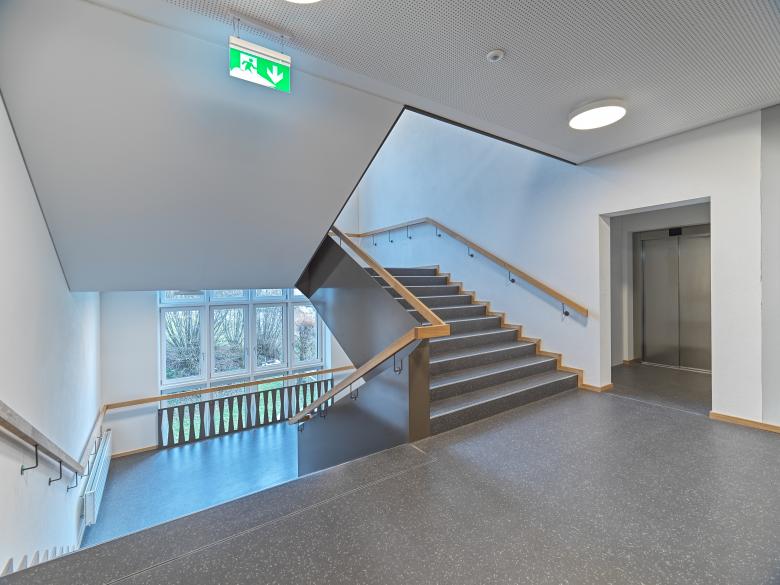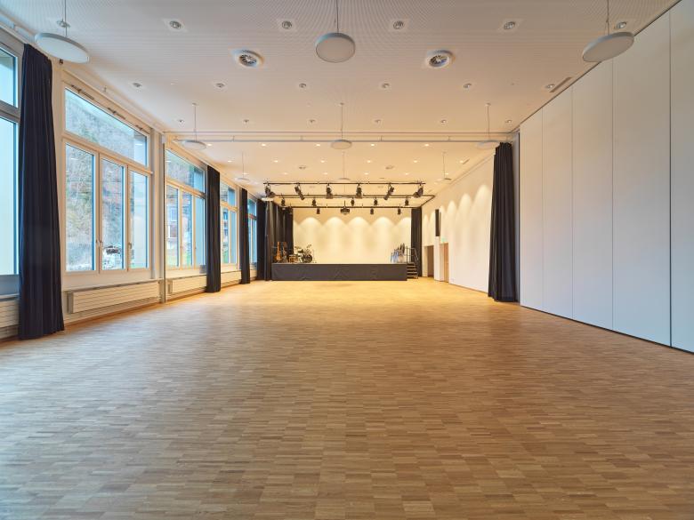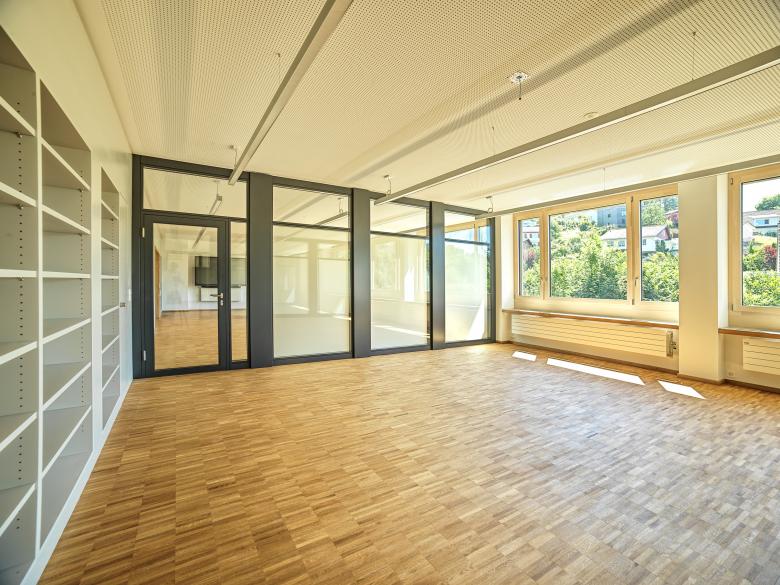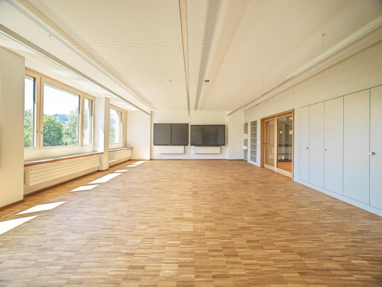 Die Schulanlage Risi - bestehend aus zwei Gebäudetrakten, welche im Untergeschoss und mittels einer Überdachung miteinander verbunden sind - soll komplett saniert und umgebaut werden. Der ältere Trakt mit einem imposanten Kreuzgiebel stammt aus dem Jahr 1916 und ist denkmalgeschützt. Der grössere Erweiterungsbau wurde 1974 erbaut. Im Rahmen der Instandsetzung wird die Gesamtschule den heutigen Raumansprüchen angepasst und durch Kindergarten und Aula ergänzt. Für den Erweiterungsbau heisst dies, dass die bestehende Fassade aus vorgehängten Betonelementen durch eine neue, gedämmte und hinterlüftete Fassade ersetzt wird. Beide Trakte werden für eine hindernisfreie Erschliessung neu mit Liften ausgestattet und für die Erdbebenertüchtigung werden neue Erdbebenwände über alle Geschosse erstellt. Die Haustechnik wird komplett ersetzt und den heutigen Anforderungen angepasst. Das geforderte Raumprogramm benötigte neu eine Aula, Kindergartenräume, 14 Klassenzimmer mit Gruppe und Lernzonen, Handarbeit- und Werkräumen, Schulküche und Turnhalle. Die Grundrisse beider Gebäude wurden für grössere Räume neu strukturiert und eingeteilt. Die ehemalige Gymnastikhalle im 2. Obergeschoss wird zu einer Aula für 350 Personen umgebaut, welche durch eine mobile Trennwand auch in zwei Nutzräume unterteilt werden kann. Auch sämtliche Umgebungs- Spiel und Pausenflächen der Schulanlage werden neu konzipiert und gestaltet.