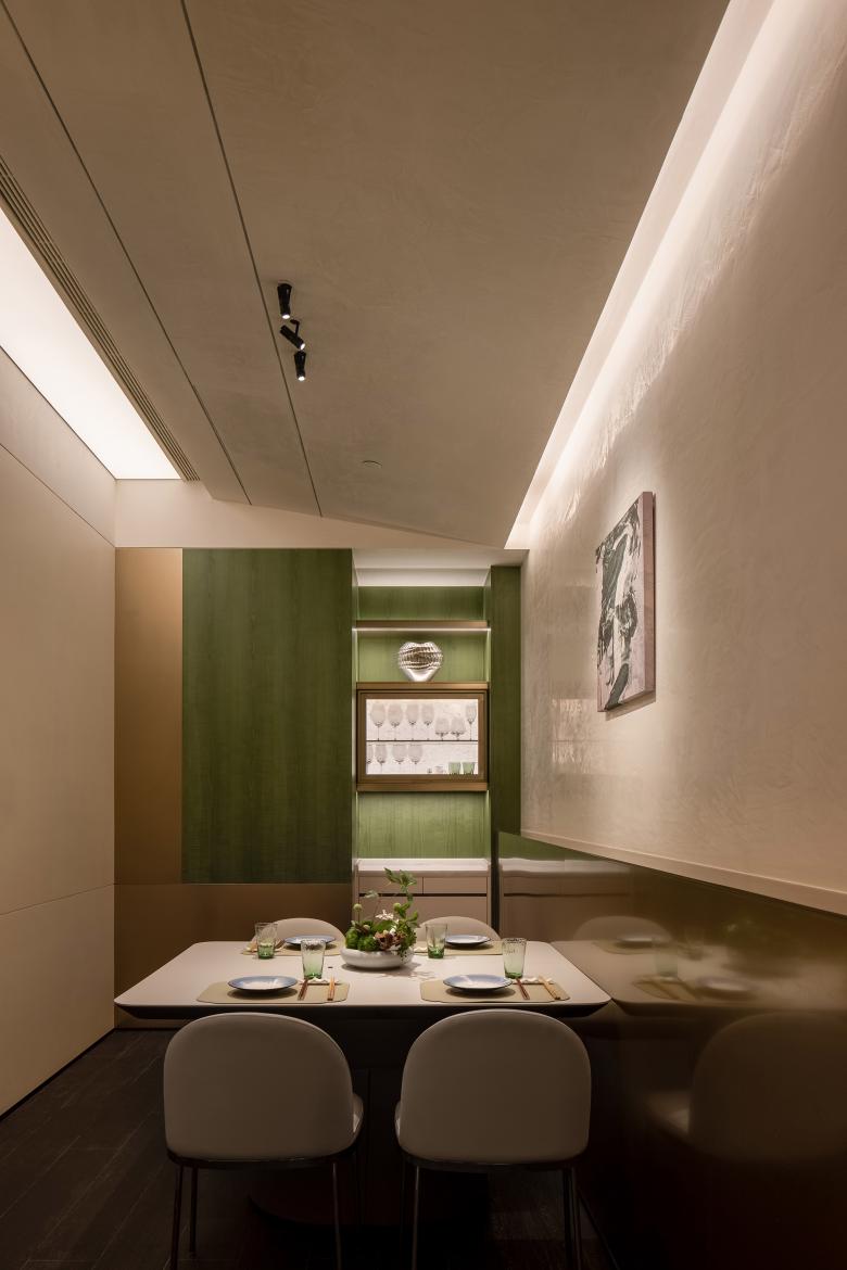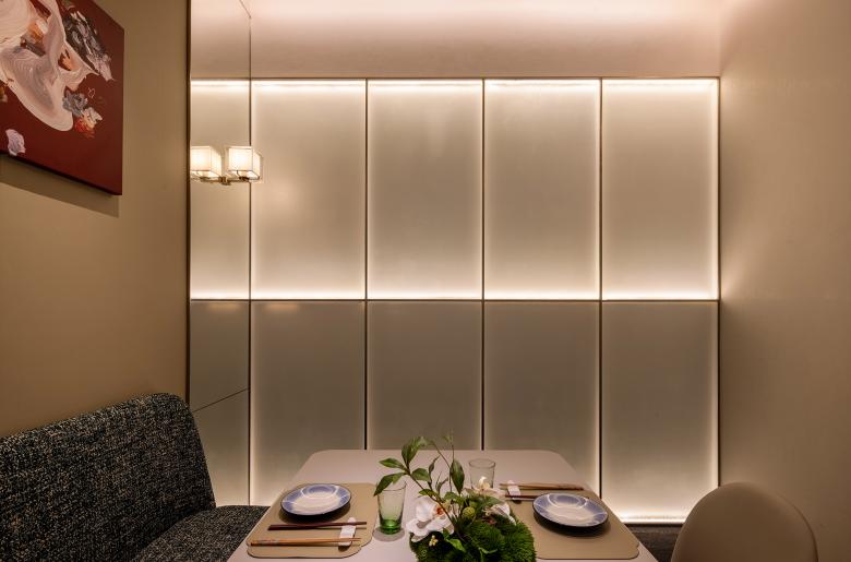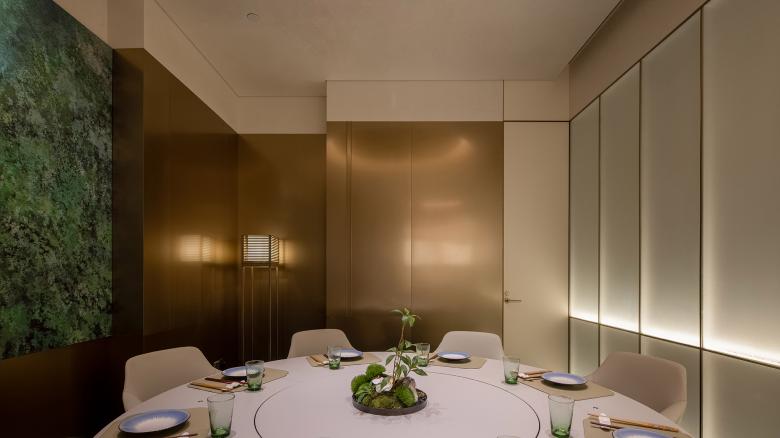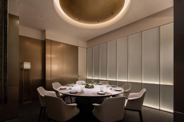 The 300-square-meter dining area houses seven private rooms and a total of 76 seats—an impressive feat for a high-end restaurant. AD ARCHITECTURE meticulously managed spatial proportions and de-emphasized the pre-dining lounge area for enhancing cost-effectiveness.