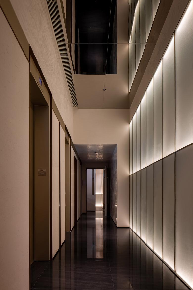The passage’s enclosed layout posed a challenge, potentially leading to a sense of confinement. The designers addressed this by incorporating partial mirrored surfaces and recessed illuminated walls, significantly enhancing the overall sense of openness and comfort.