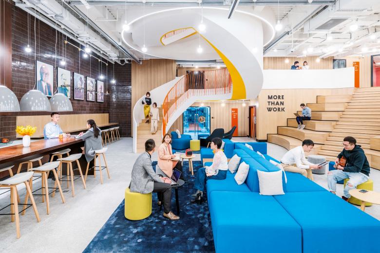Coworking Spaces wie das SOHO 3Q WuJiaoChang sind Orte pulsierender Energie. Das Unerwartete gehört dort zur Tagesordnung. Für Chinas Millennials, die mit Abstand größte Bevölkerungsgruppe im Lande, sind es vor allem Arbeitsstätten der Begegnung – Orte, an denen man interessante Menschen kennenlernt und gemeinsam Neues schafft. So kommt man mit Talenten, Querdenkern und „Machern“ in Kontakt, die bald schon Mitarbeiter oder Geschäftspartner sein könnten. Mit der Umwandlung eines Shanghaier Department Stores aus den achtziger Jahren durften wir einen spannenden Beitrag zu diesem Thema leisten – und damit auch zur Zukunft der Arbeit. Auftraggeber für das Projekt war SOHO China, der größte private Immobilienentwickler des Landes, der sich bereits durch spektakuläre Bauprojekte einen Namen gemacht hat.