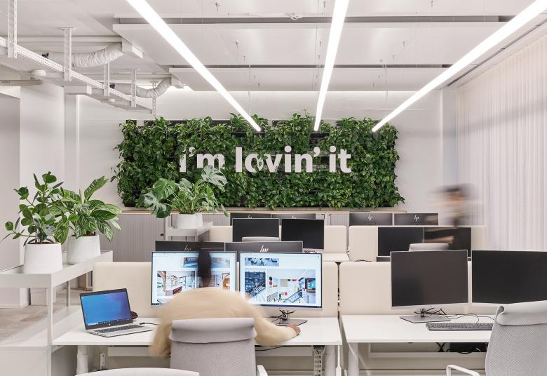 Zellenbüros, fixe Arbeitsplätze und eine wenig innovative Atmosphäre – so präsentierte sich der in die Jahre gekommene Schweizer Hauptsitz von McDonald’s im französischsprachigen Crissier. Aufgrund der Erfahrungen aus dem Konzern setzte sich die Geschäftsleitung zum Ziel, eine zukunftsorientierte, effiziente und flexible Arbeitsumgebung zu schaffen, welche die funktionsübergreifende Teamarbeit fördert, ungenutzte Fläche reduziert und den Spirit und die Werte von McDonald‘s in einem inspirierenden Arbeitsumfeld verankert.